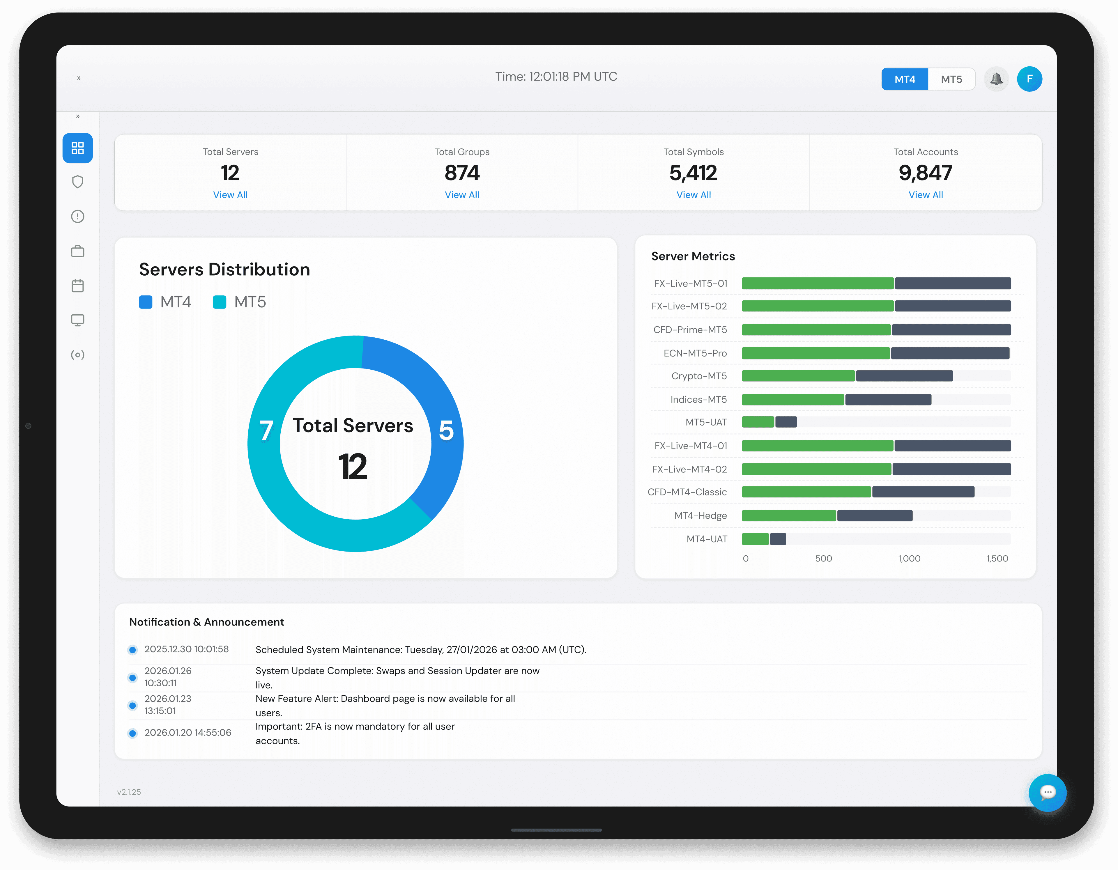 Centrally manage multiple MT4/MT5 servers—Live and Demo—from one unified interface.